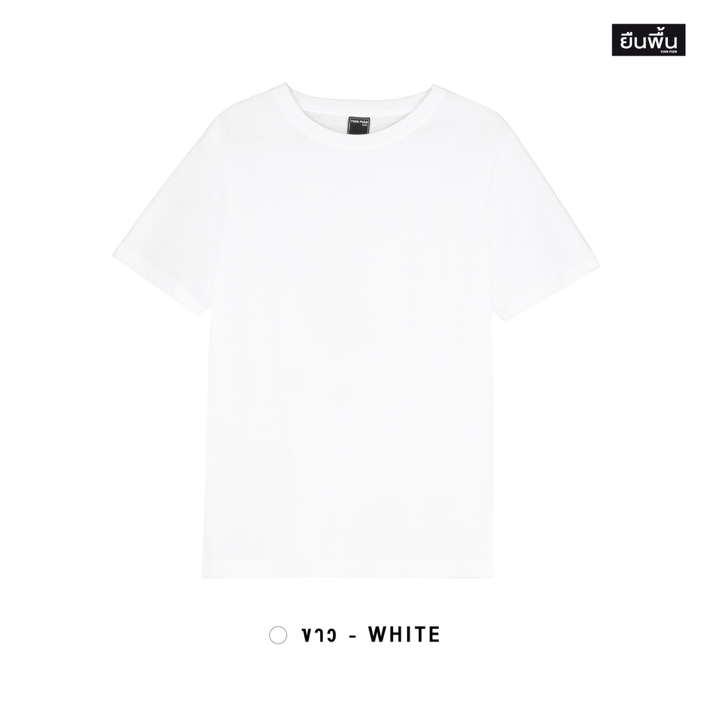 YuenPuen เสื้อยืดคอกลม สีขาว ยืนพื้น ไม่ยืด ไม่ย้วย ไม่ต้องรีด เสื้อยืดสีพื้น
