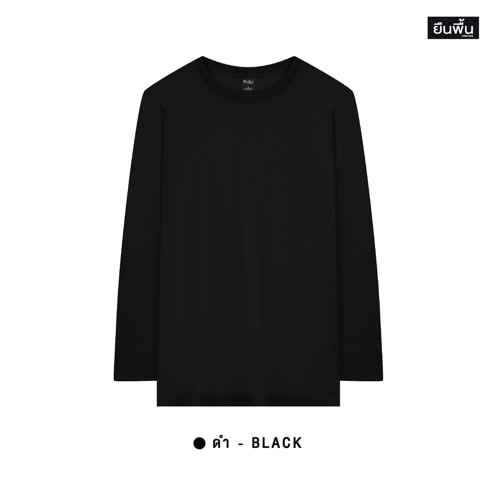 YuenPuen ยืนพื้น เสื้อยืดแขนยาว สีดำ ไม่ยืด ไม่ย้วย ไม่ต้องรีด เสื้อยืดสีพื้น