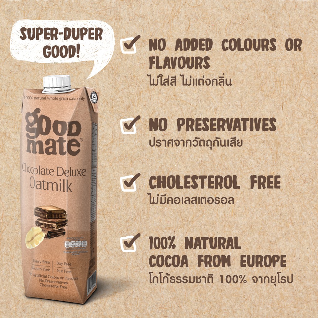 Goodmate Chocolate Deluxe Oat Milk กู๊ดเมท นมโอ๊ต สูตรช็อกโกแลตดีลักซ์ ขนาด 1000 มล. ( 6 กล่อง )
