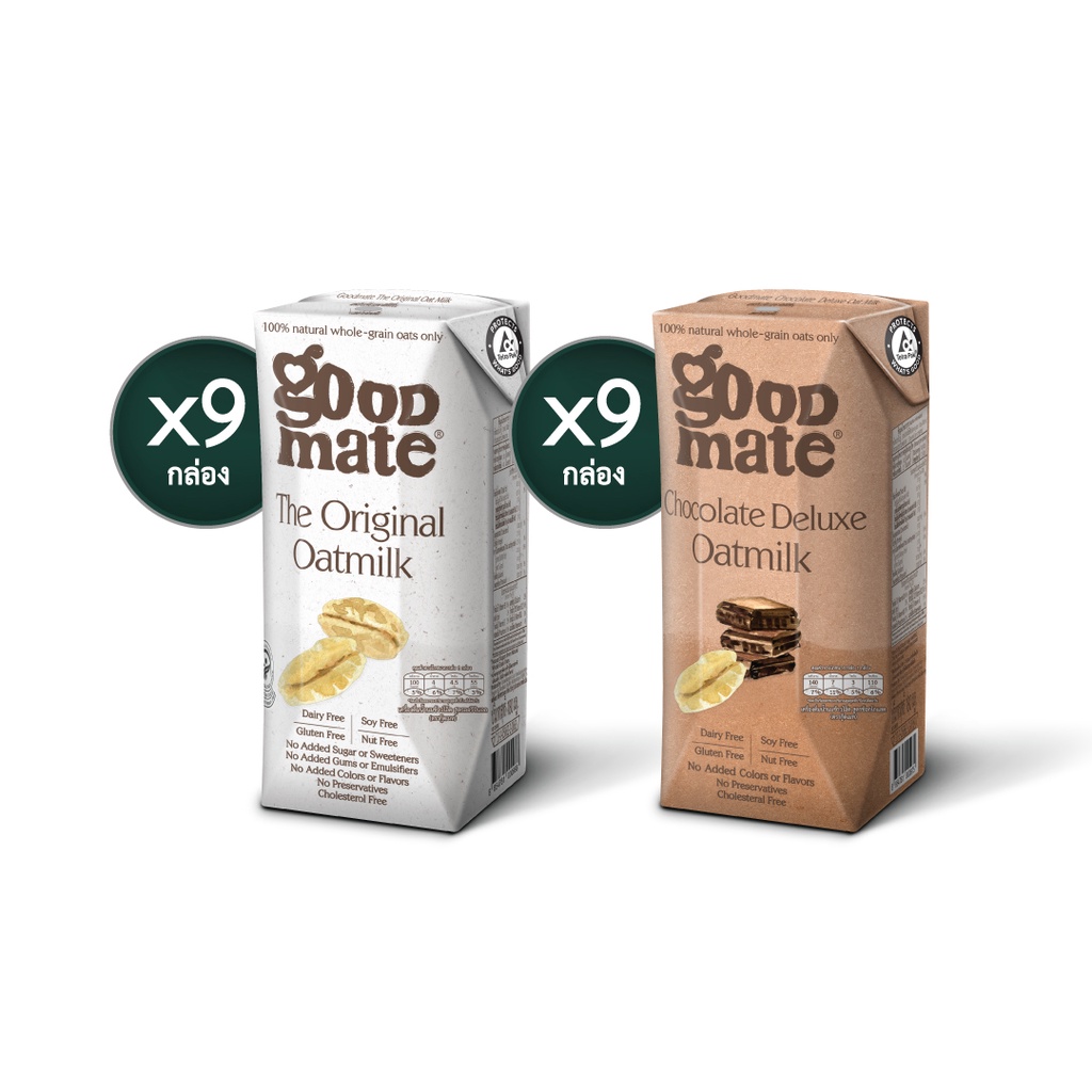 Goodmate นมโอ๊ต สูตรออริจินอล ขนาด 180 มล. (9 กล่อง) + สูตรช็อกโกแลตดีลักซ์ ขนาด 180 มล. (9 กล่อง) - (1 ลัง: 18 กล่อง)