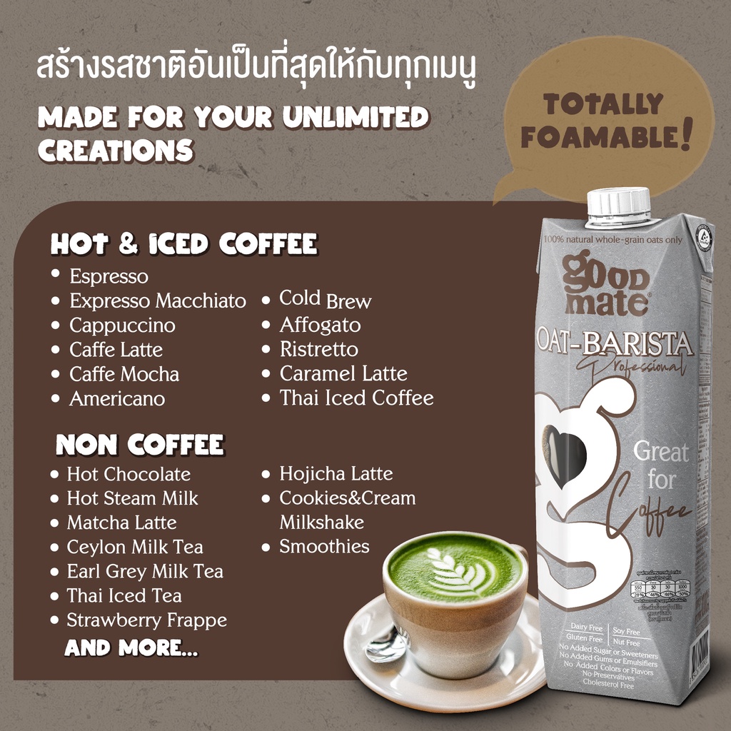 Goodmate Barista Professional Oat Milk กู๊ดเมท นมโอ๊ต สูตรบาริสต้า ขนาด 1000 มล. (6 กล่อง)