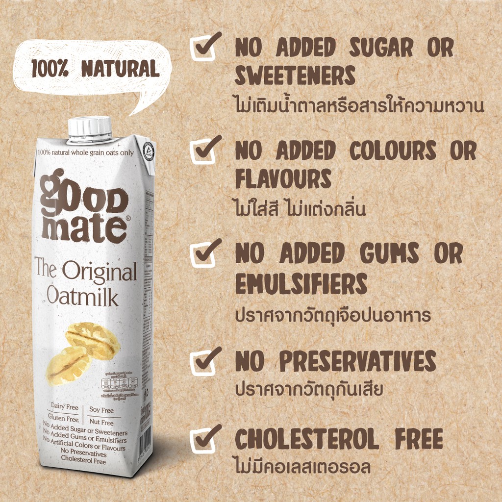 Goodmate The Original Oat Milk กู๊ดเมท นมโอ๊ต สูตรออริจินอล ขนาด 1000 มล. (1 ลัง : 12 กล่อง)