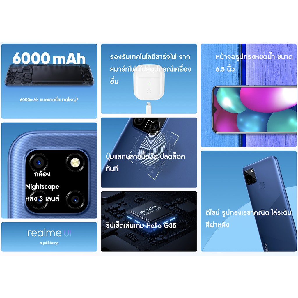Realme C12 (RAM3/ROM32) ใส่ซิม Ais เท่านั้นเครื่องใหม่มือ1 เครื่องศูนย์แท้100%ประกันศูนย์ 12 เดือนผ่อนSplayleter/บัตรCr