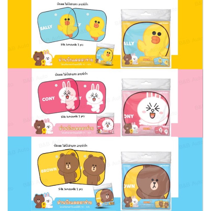 ม่านบังแดดข้างรถยนต์ตาข่าย ม่านบังแดดข้างลิขสิทธิ์แท้ line friends (แพ็คคู่ 2ชิ้น)