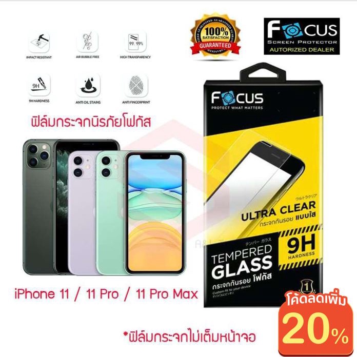 [9.9 ลด MTCHECK99] FOCUS ฟิล์มกระจกกันรอย Use For iPhone 11/11Pro/11Pro Max/7Plus/8 Plus /7/8/SE 2020 (TEMPERED GLASS)