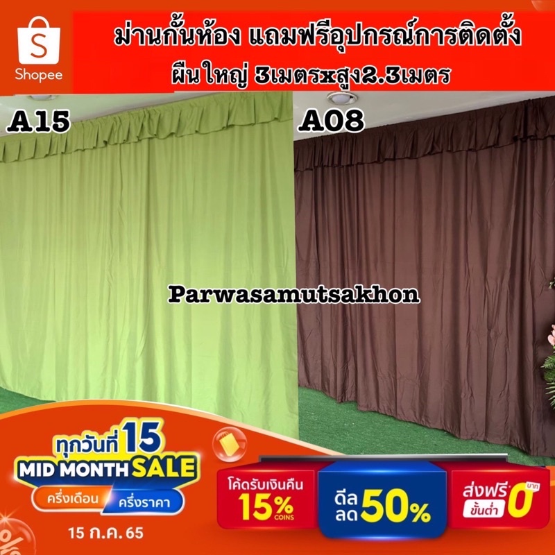 #ม่านกั้นห้อง #สีพื้น แถมฟรีเชือกแขวนผ้าม่าน