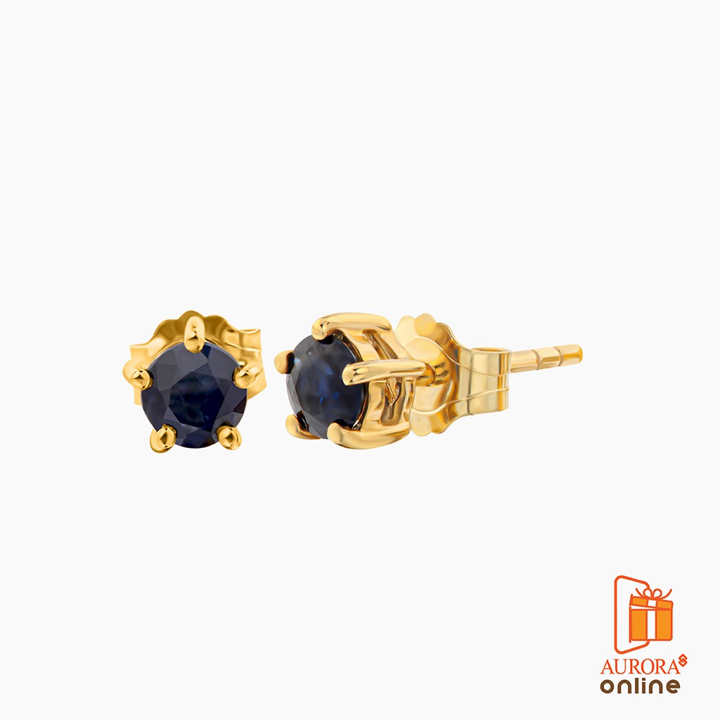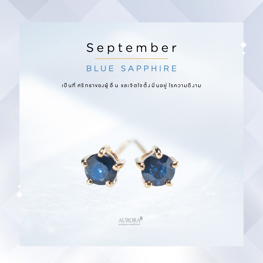 AURORA ต่างหูทองคำแท้ 75% ฝังพลอยแท้ ประจำเดือนเกิด กันยายน *ของแท้*