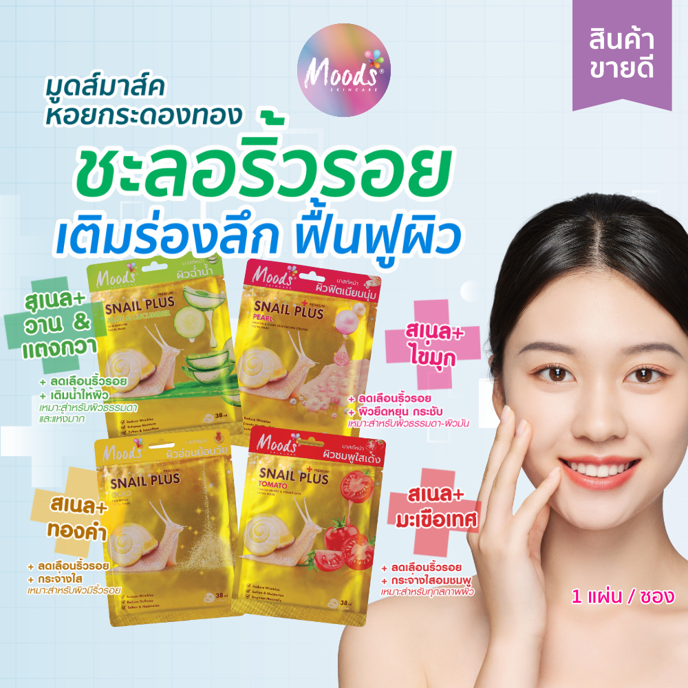 แพ็คเกจใหม่! มูดส์ มาส์คหอยกระดองทอง 4 สูตร 38ml
