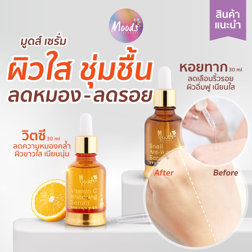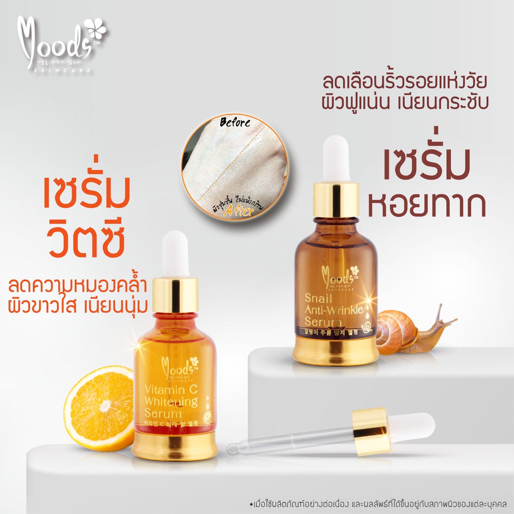 มูดส์ วิตามิน ซี ไวท์เทนนิ่ง เซรั่ม / มูดส์ สเนล แอนตี้ ริงเคิล เซรั่ม 30 ml - เซรั่มวิตซี / เซรั่มหอยทา