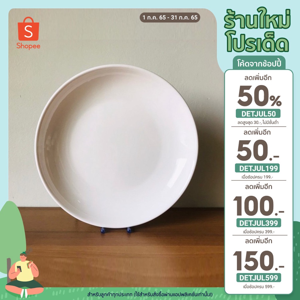 🔥ลด 12.-โค้ด INC2SM7L / เก็บโค้ดหน้าร้าน🔥 จานใบบัว จานเซรามิค ขนาด 8"/ 20.5 ซม. สีขาว เข้าไมโครเวฟได้