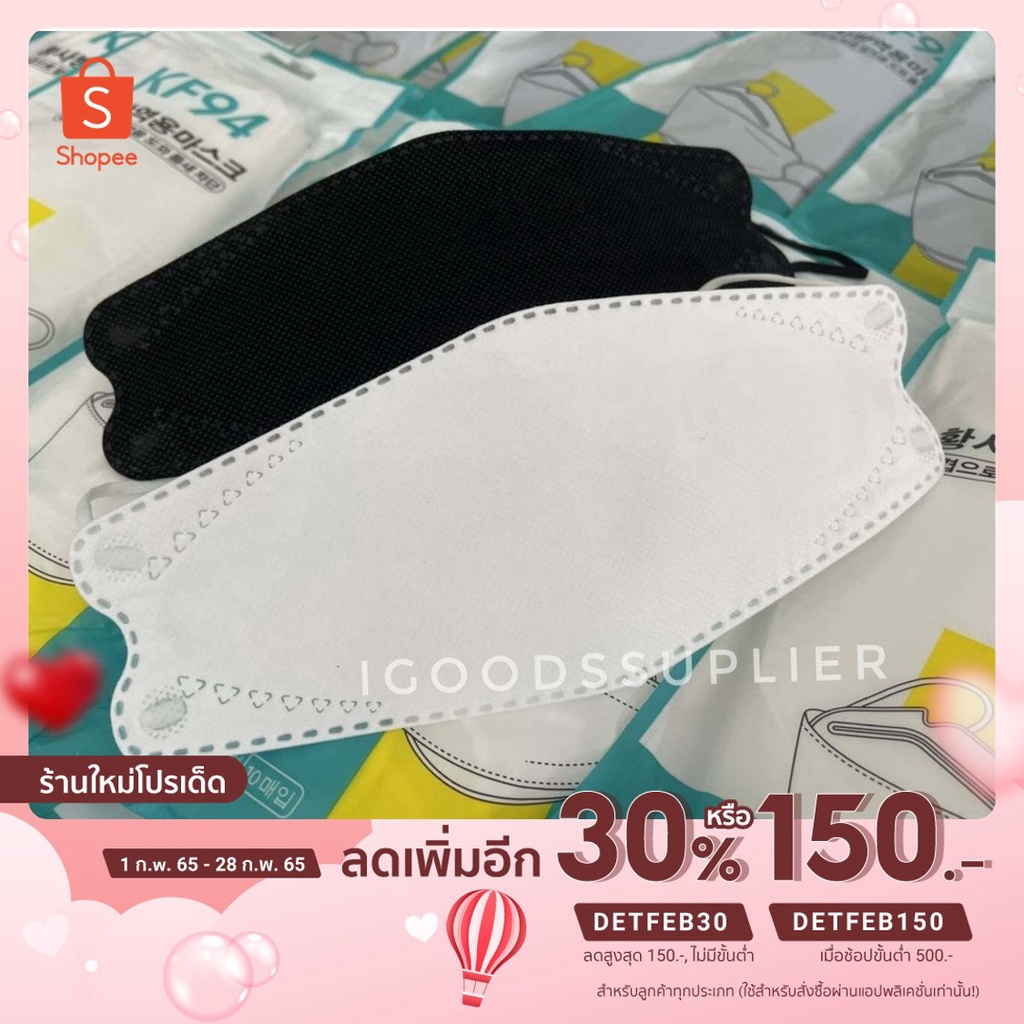 (เหลือ 17.- ใส่โค้ด DETFEB30) พร้อมส่ง KF94 Mask 3D แมสเกาหลี กระชับรูปหน้า มีให้เลือก 2 สี ดำ ขาว 1 แพค มี 10 ชิ้น