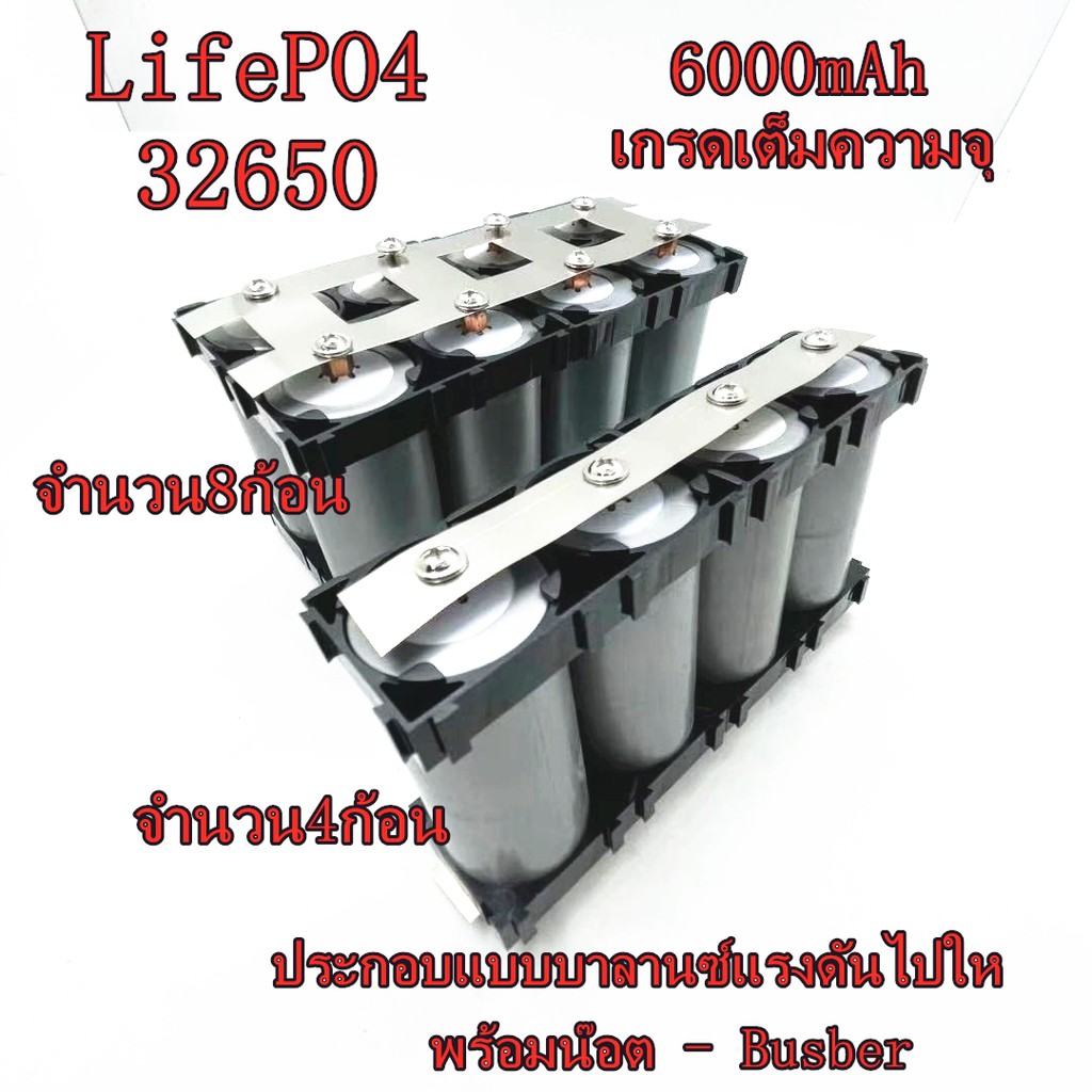 แบตเตอรี่ LifePO4 เกรด A ความจุ 6000 mAhแท้ ราคา 4 ก้อน และ ราคา 8 ก้อน พร้อมอุปกรณ์ครบชุด ขนาด 32650 แบบหัวเกลียว