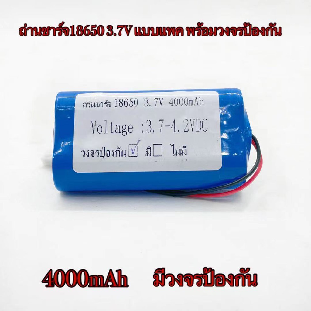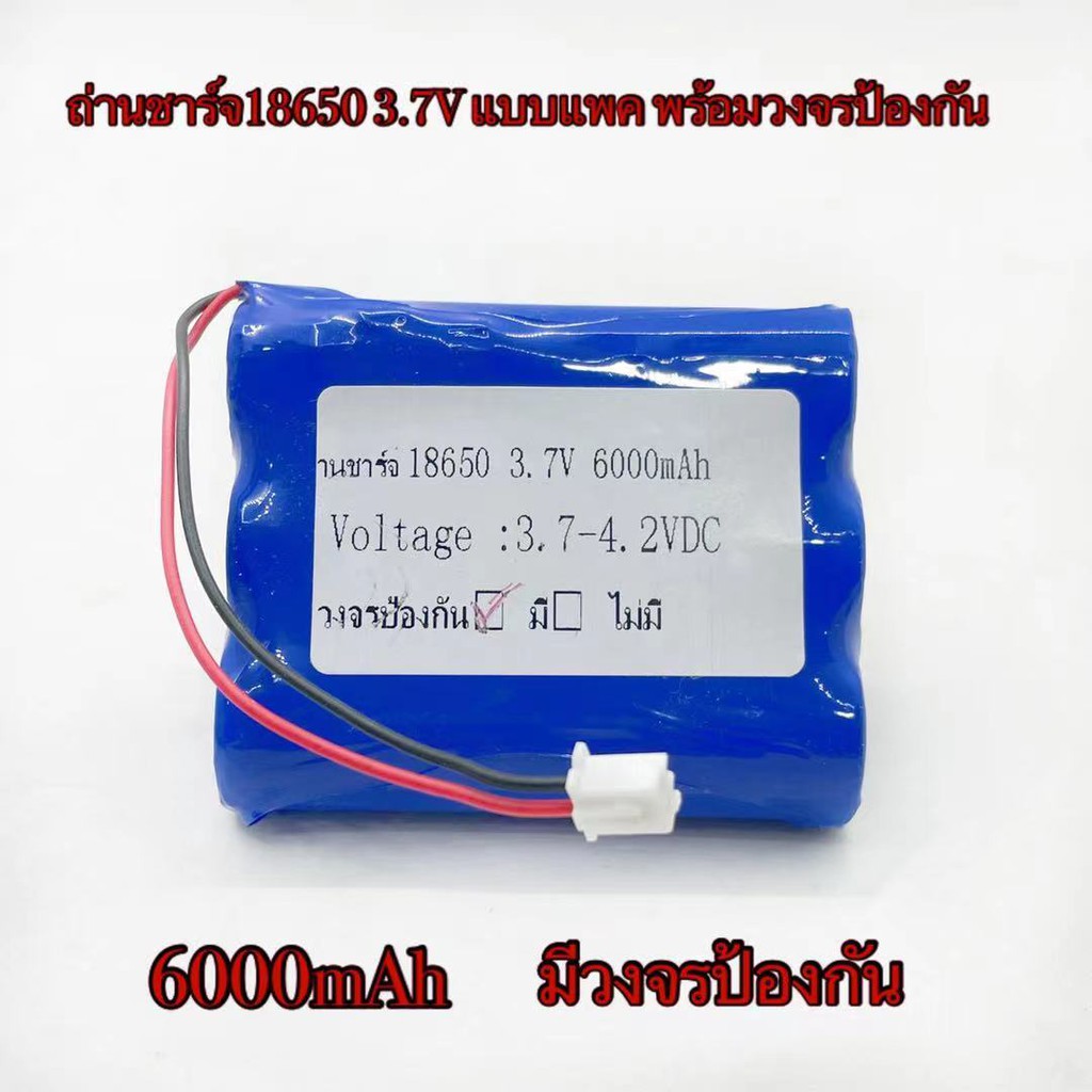 ถ่านชาร์จ18650 3.7V แบบแพค 2000mAh 4000mAh 6000mAh 8000mAh พร้อมวงจรป้องกัน