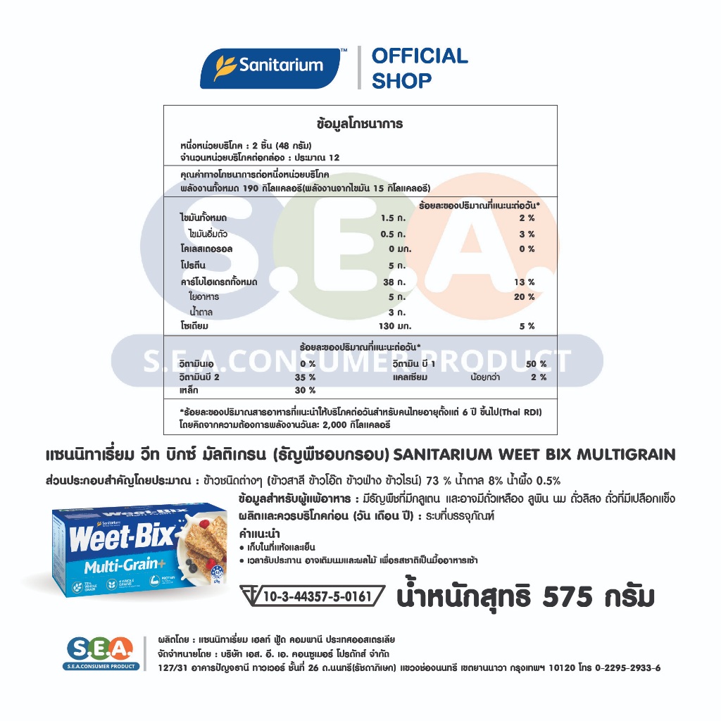 Sanitarium วิทบิกซ์ ธัญพืชอบกรอบ สูตรมัลติเกรน WeetBix Multi-Grain 575g. | Exp: 18 Dec 2026