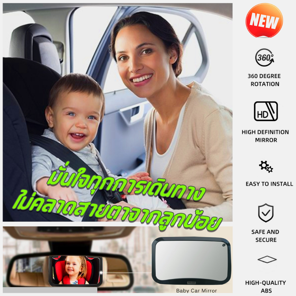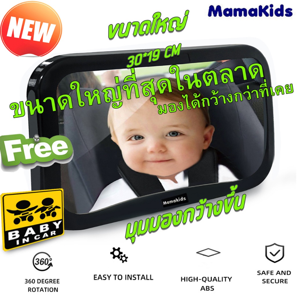 Mamakids Backseat Mirror Wide Screen กระจกมองคาร์ซีท ขนาดใหญ่ที่สุดในตลาด มองได้กว้างกว่าที่เคย มั่นคงแข็งแรง
