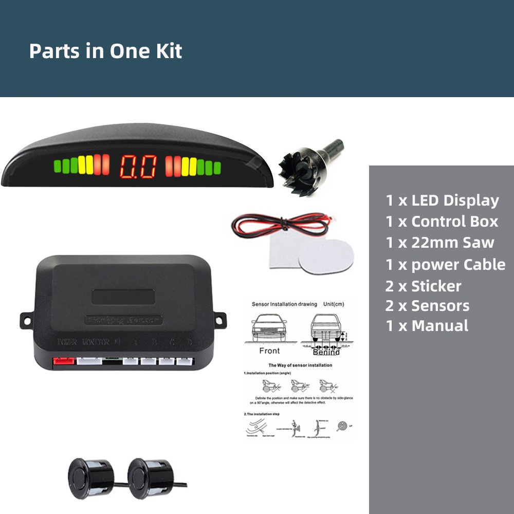 ชุดเซนเซอร์จอดรถยนต์ LED 2 เซนเซอร์ 22 มม. ระบบเตือนภัยเรดาร์ย้อนกลับ ระบบแจ้งเตือนเสียง