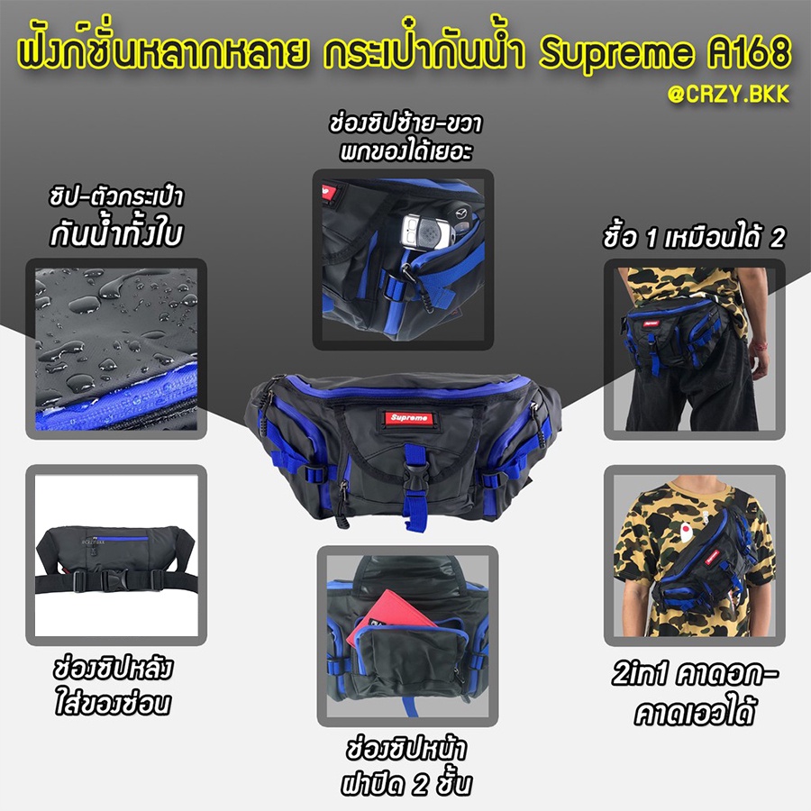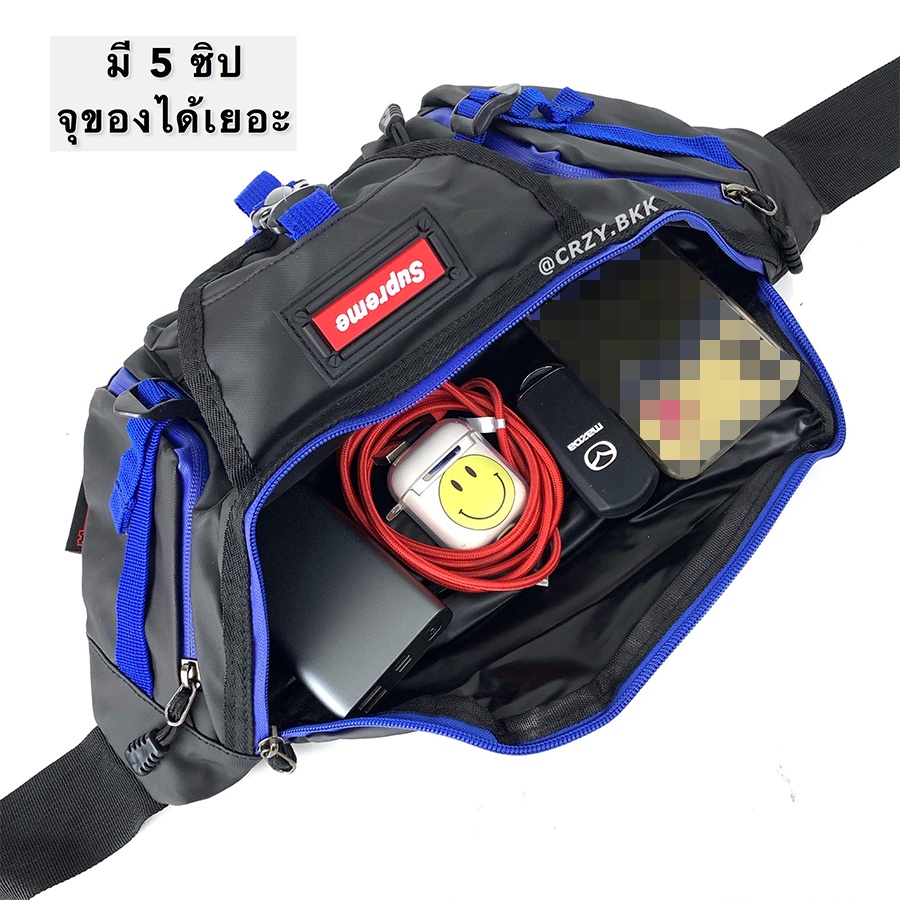 กรอกโค้ด 30WOW44 ลดสูงสุด 30% CRZY.BKK ▸ A168 กระเป๋าคาดอก คาดเอว กันน้ำ จุมาก ซิปเยอะ 5 ช่อง