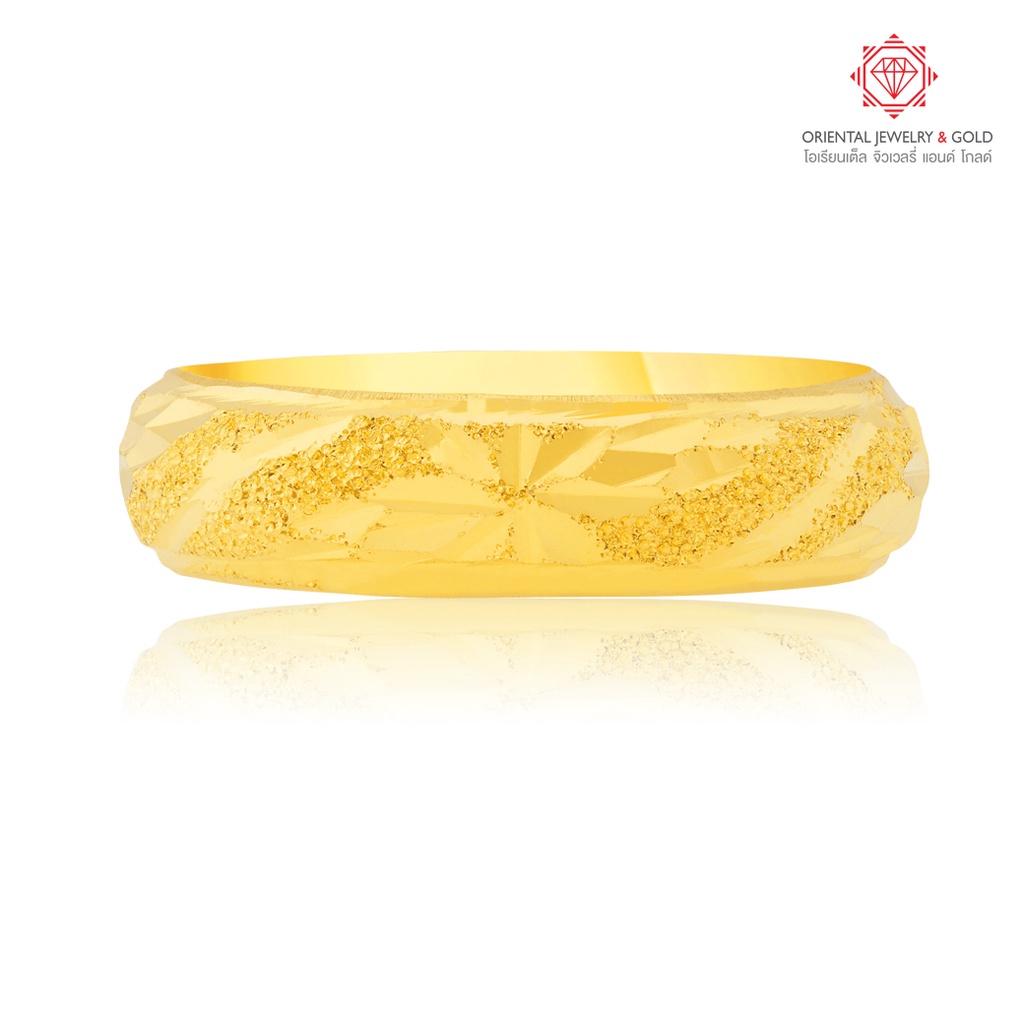 OJ GOLD แหวนทองแท้ นน. ครึ่งสลึง 96.5% 1.9 กรัม ปอกมีดตัดลาย ขายได้ จำนำได้ มีใบรับประกัน แหวนทอง