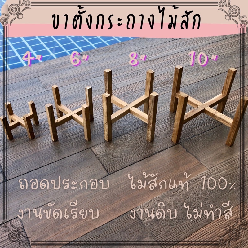 ขาตั้งกระถางต้นไม้ ที่วางกระถางทำจากไม้สัก ขนาด 4"-12" แข็งแรง ทนทาน รับน้ำหนักเยี่ยม พร้อมส่ง