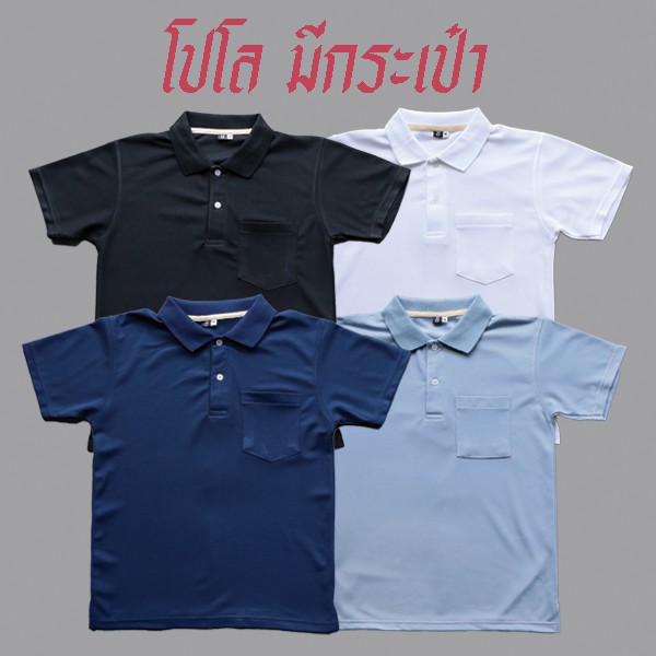 เสื้อโป โล [มีกระเป๋า] สีพื้น ทรงตรง ใส่ได้ทั้ง ช ญ