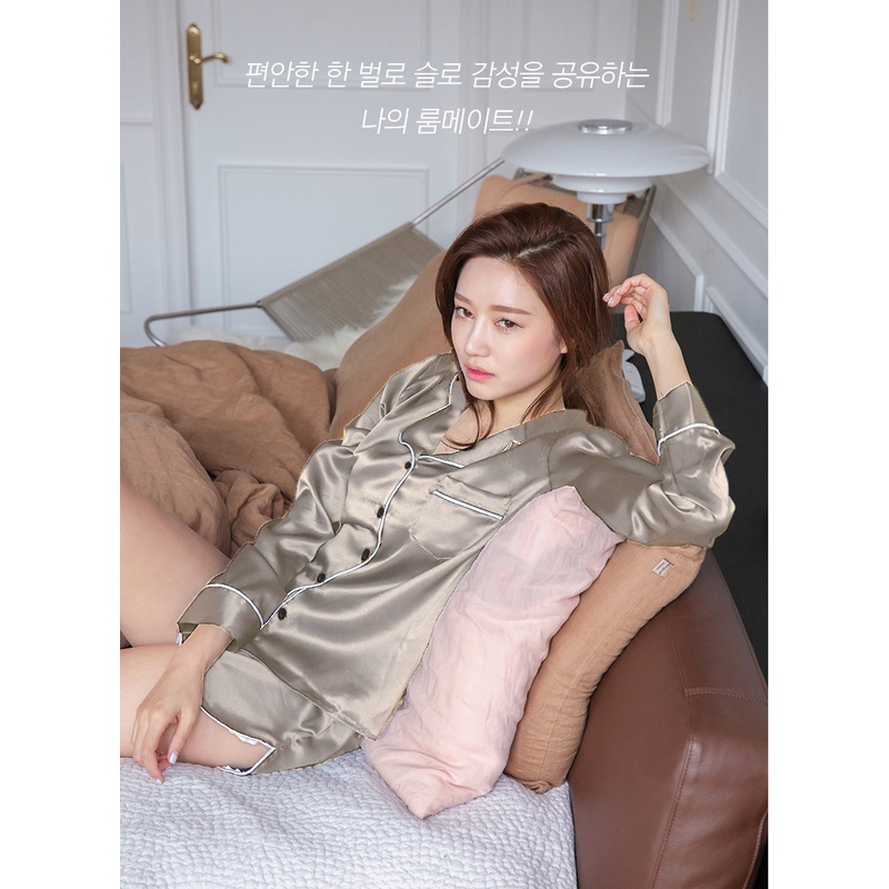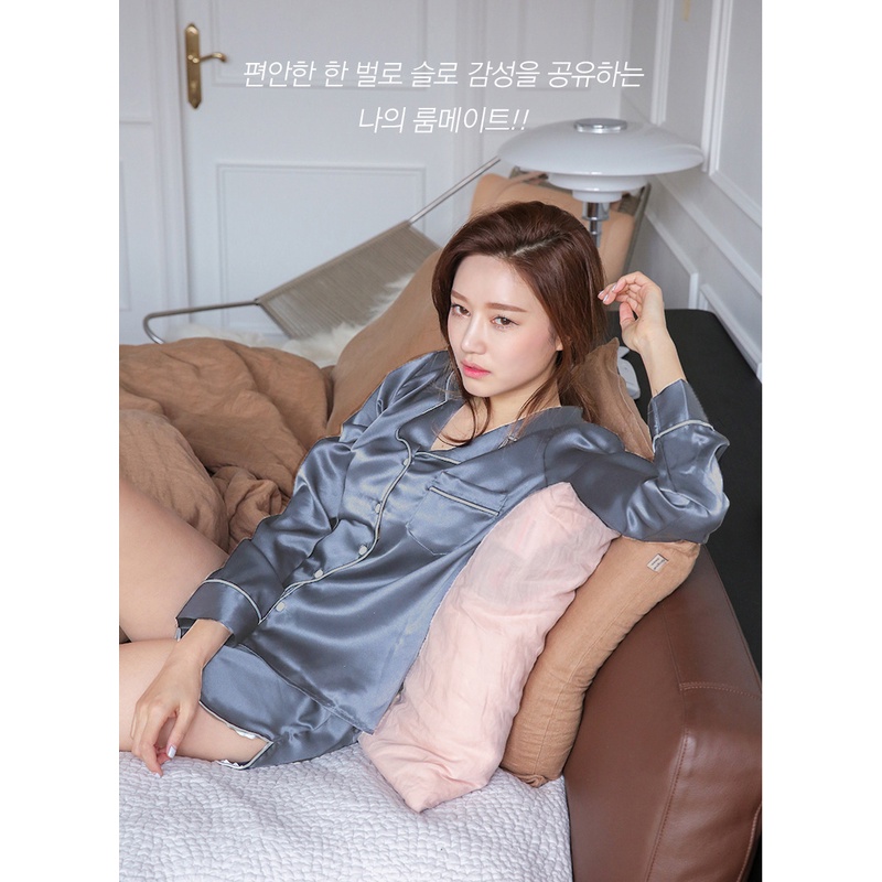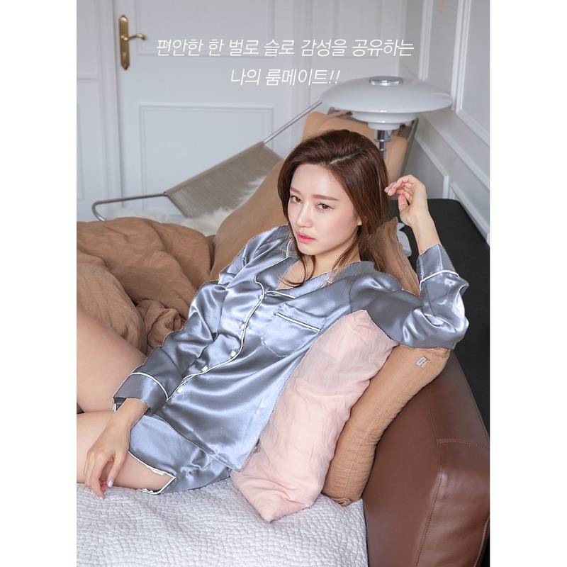 7777 พร้อมส่ง ชุดนอนแขนยาว ขาสั้น ชุดนอนแฟร์ชั่นใหม่ ต้อนรับหน้าร้อน ชุดนอนผ้าซาติน มีหลายสี ผ้านุ่มใส่สบาย