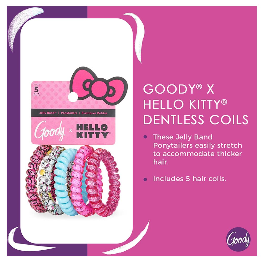 Goody[++สินค้ามีตำหนิ รอยถลอก และแพคเกจยับไม่มีผลต่อการใช้งาน]ยางรัดผมแบบเกลียวขนาดกลาง 5 ชิ้น คละสี ฮัลโหล คิตตี้