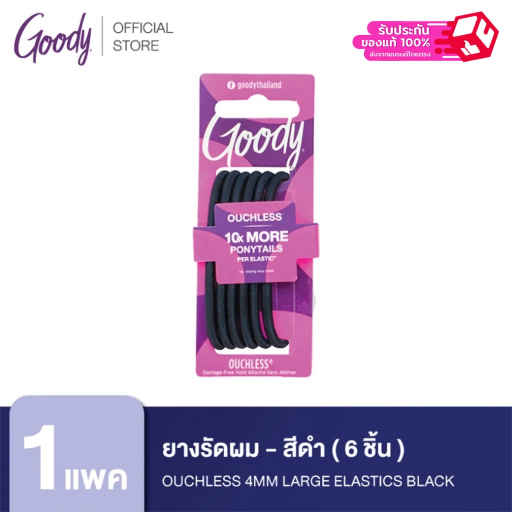 [ขายดี++]Goody ยางรัดผม 05000 Ouchless 4MM Large Elastics Black - สีดำ (6 ชิ้น)