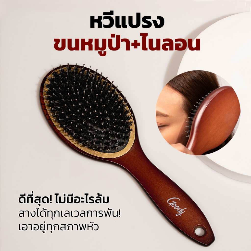 Goody 45668หวีแปรงขนหมูป่าผสมไนลอน สีน้ำตาล นำเข้าจากประเทศอเมริกา Smooth Blends Boar Ceramic Oval