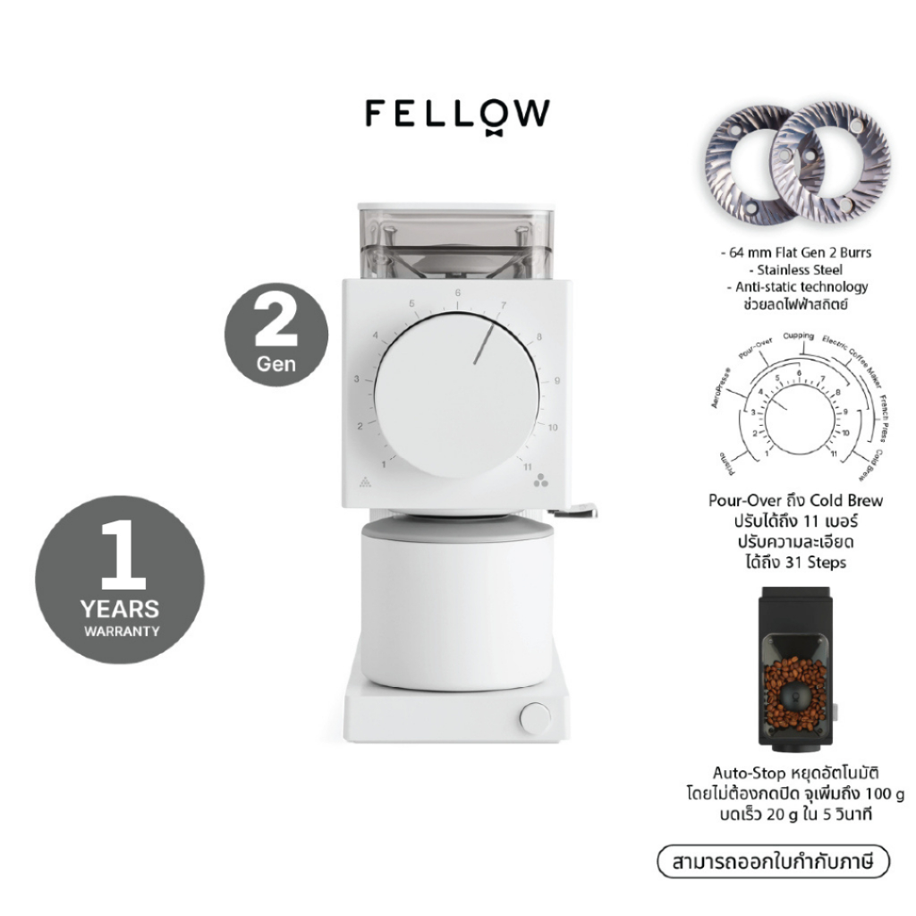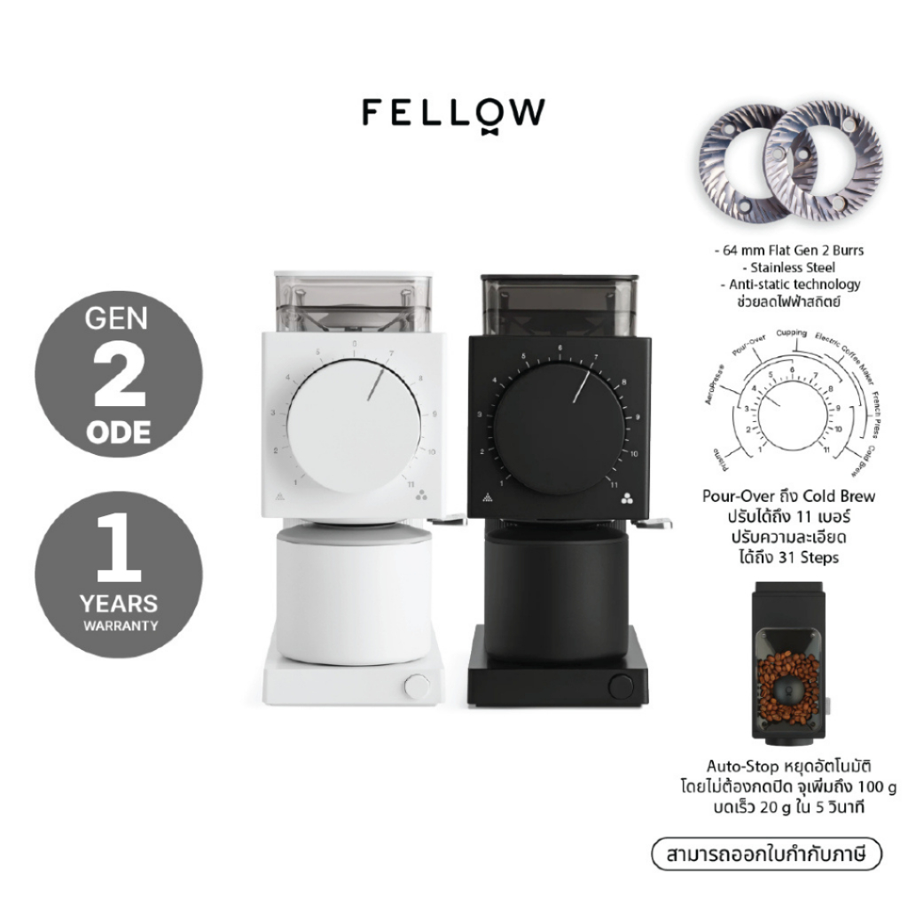 FELLOW - Ode Brew Grinder Gen 2 เครื่องบดกาแฟอัตโนมัติ ประกัน 1 ปี ศูนย์ไทย ปลั๊กไทย 220v ไม่ต้องแปลง