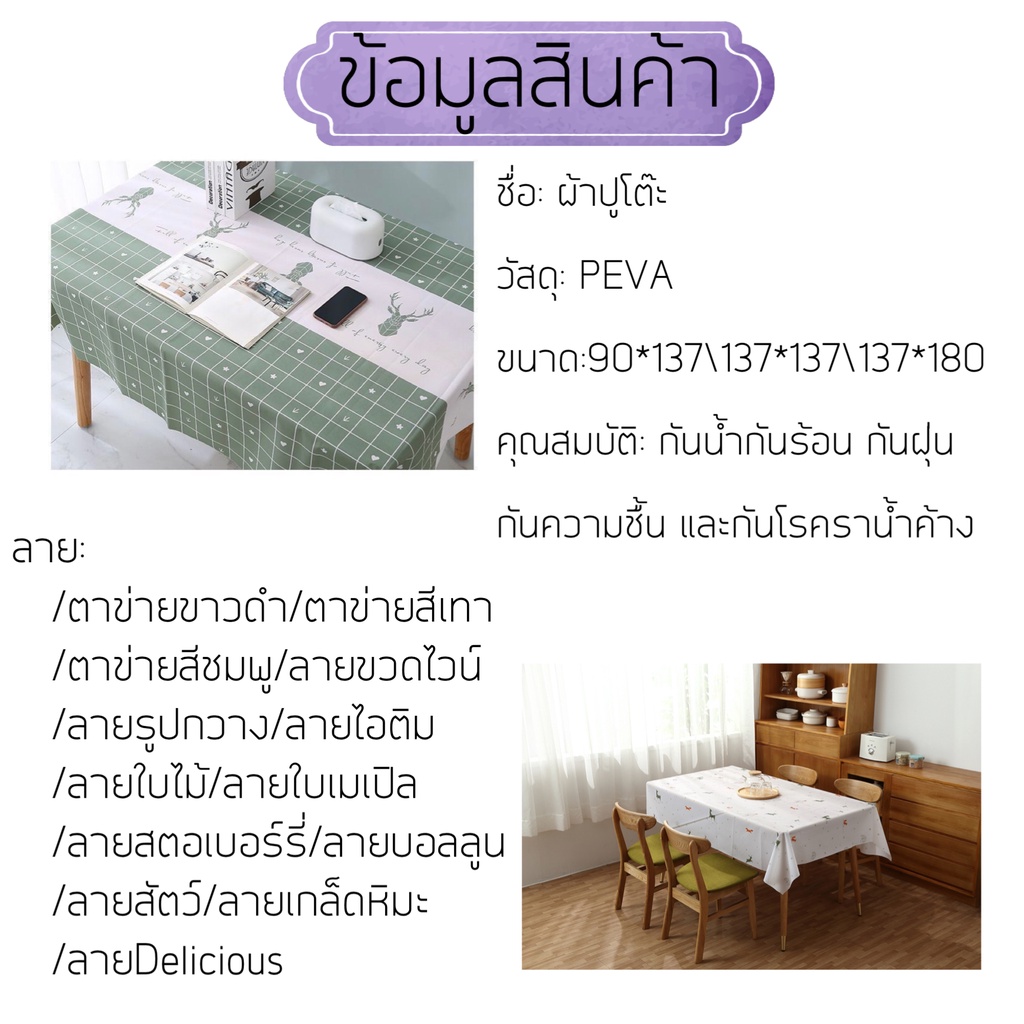 ผ้าคลุมโต๊ะ ผ้าปูโต๊ะ 💌พร้อมส่งนะคะ สี่เหลี่ยม ลายตาราง กันน้ำ มี 13 ลาย 3 ขนาด