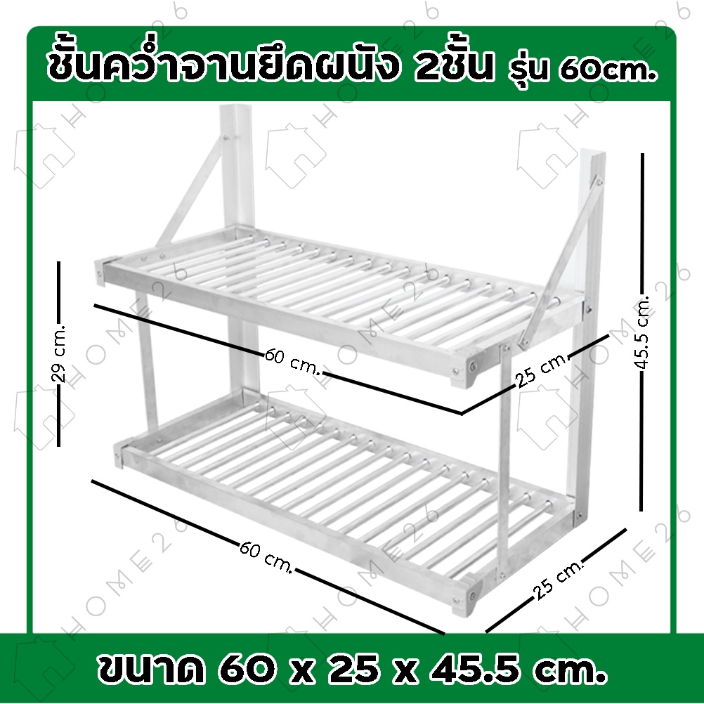 Home26 ชั้นคว่ำจาน 2ชั้น อลูมิเนียม ไม่ขึ้นสนิม ยึดติดผนัง จัดเก็บภาชนะในครัว หน้ากว้าง 60/80/100 ซม