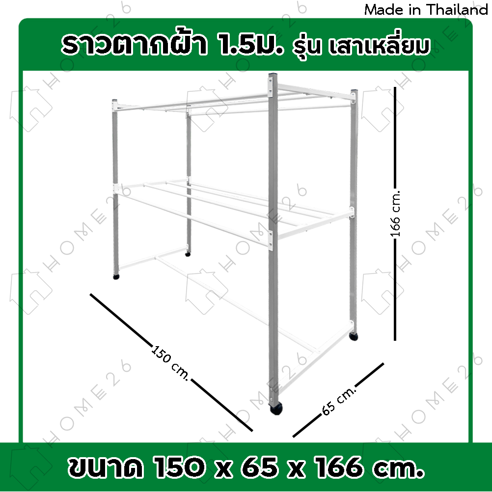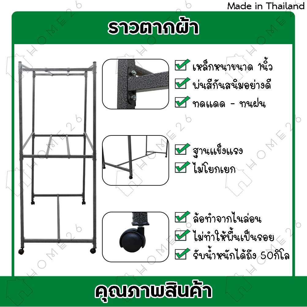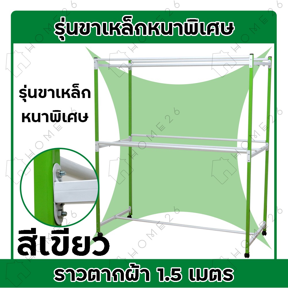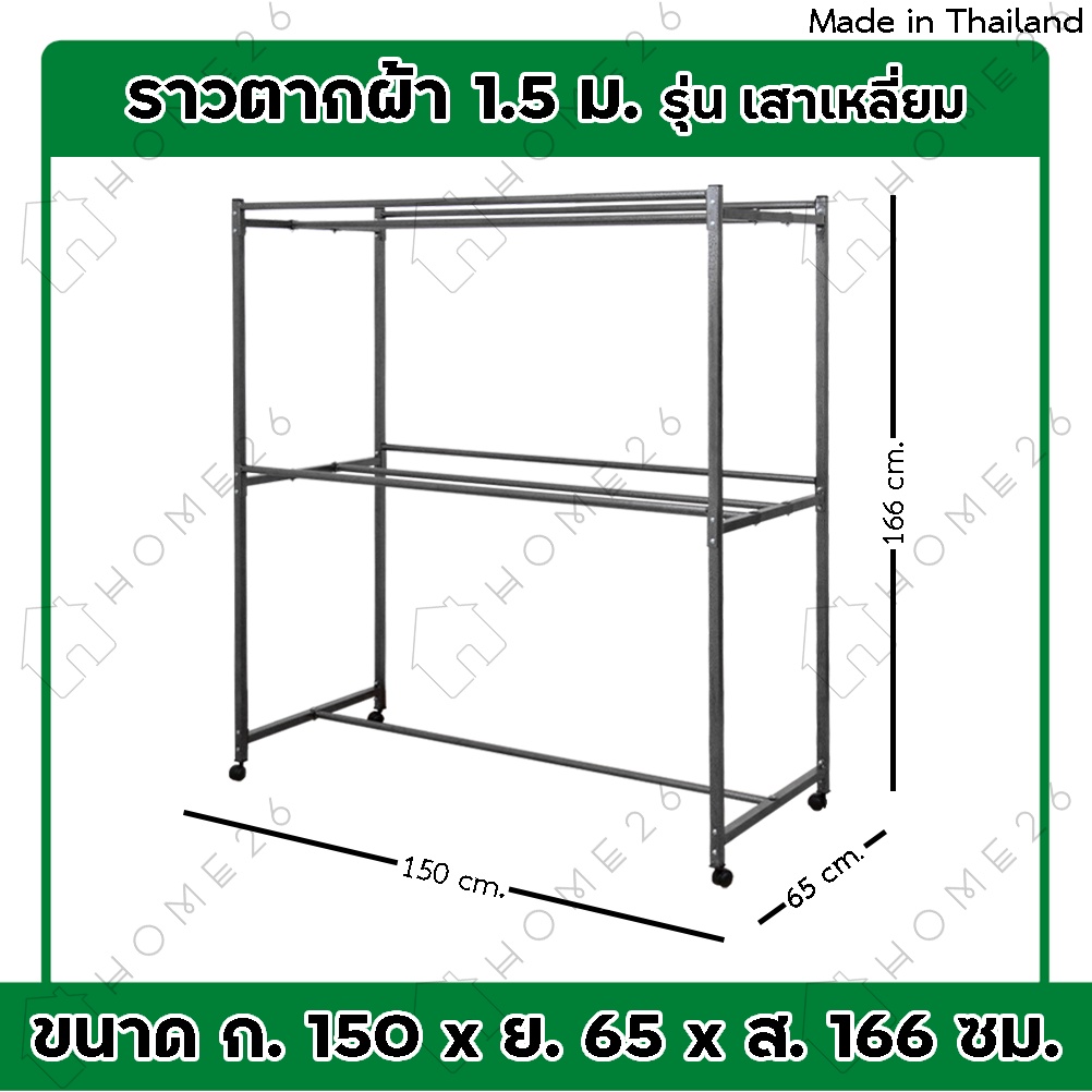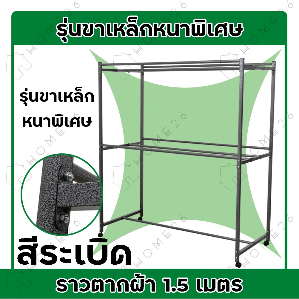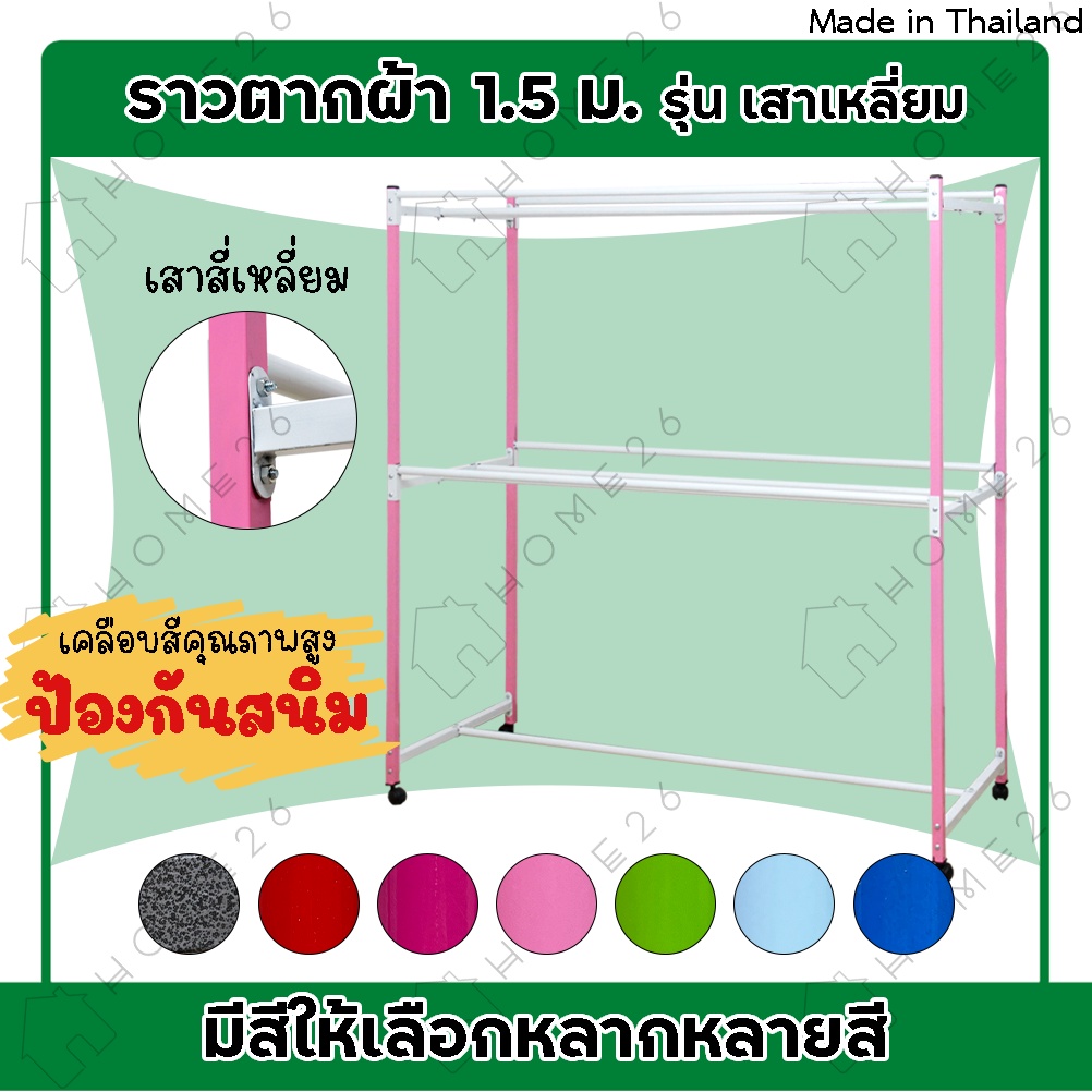 Home26 ราวสนามเหล็ก ตากผ้า มีล้อ 1.5เมตร รุ่น เหล็กเหลี่ยม
