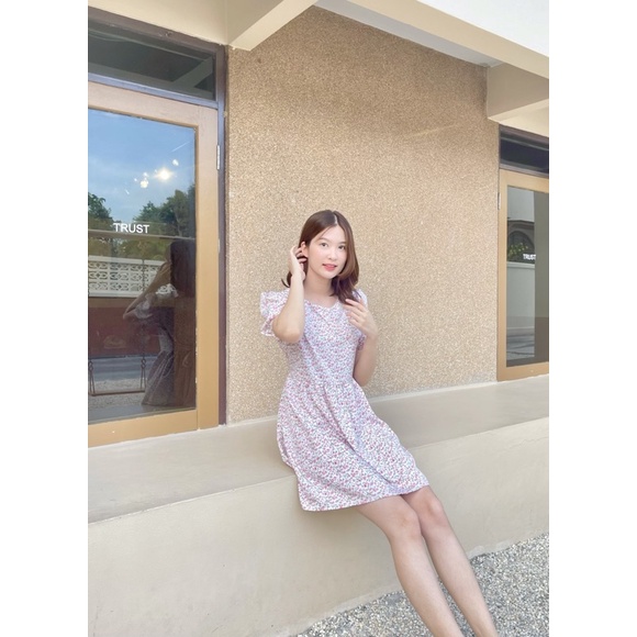 {เหลือ250.- Code : WFLQPQ}⛅️Zinnia Minidress มินิเดรสคอกลมแต่งโบว์ผูก มินิเดรสสไตล์เกาหลี มินิเดรส น่ารักมากค่า💓
