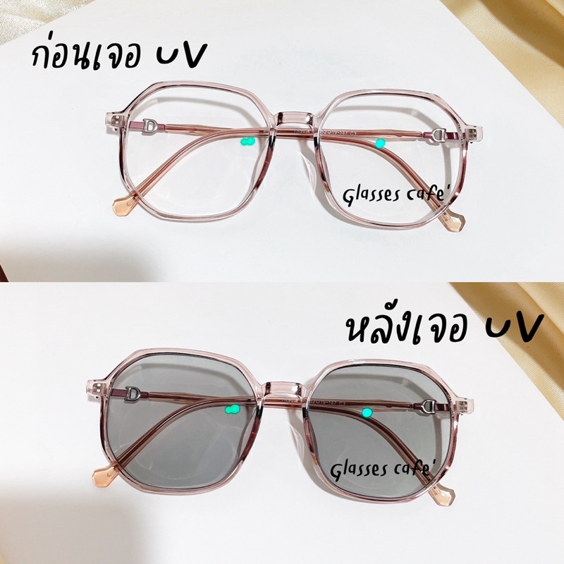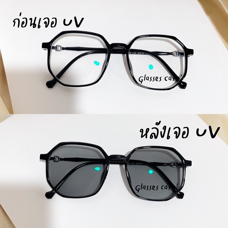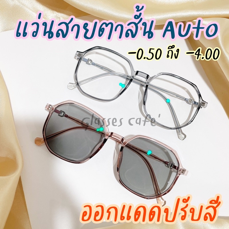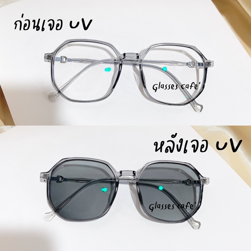 แว่นสายตาสั้นกรองแสง ออกแดดเปลี่ยนสีเทาดำออโต้ Auto เหลี่ยมมนปิดแก้มดีมาก (8181B)