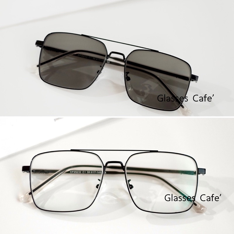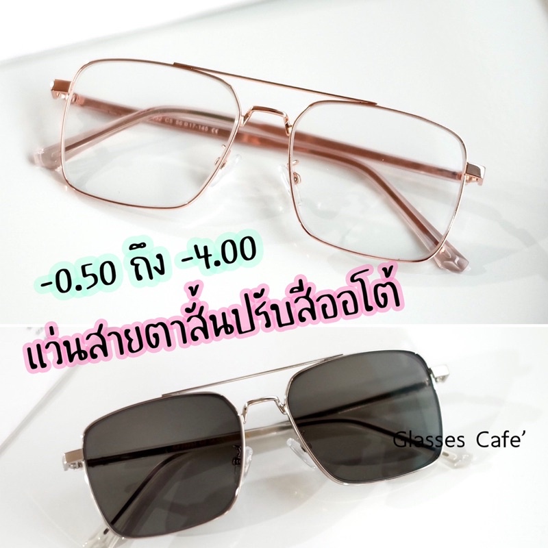 แว่นสายตาสั้นออโต้ กัน UV ค่าสายตา -0.50 ถึง -4.00 กรองแสง+ออกแดดปรับสีเทาดำ (29232B)