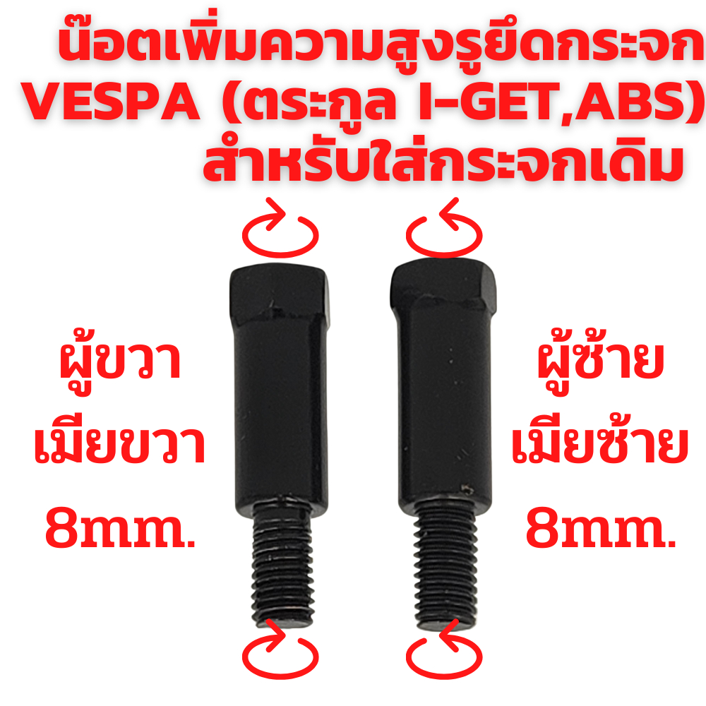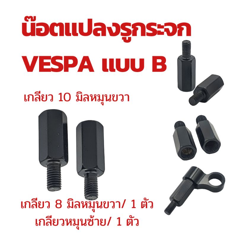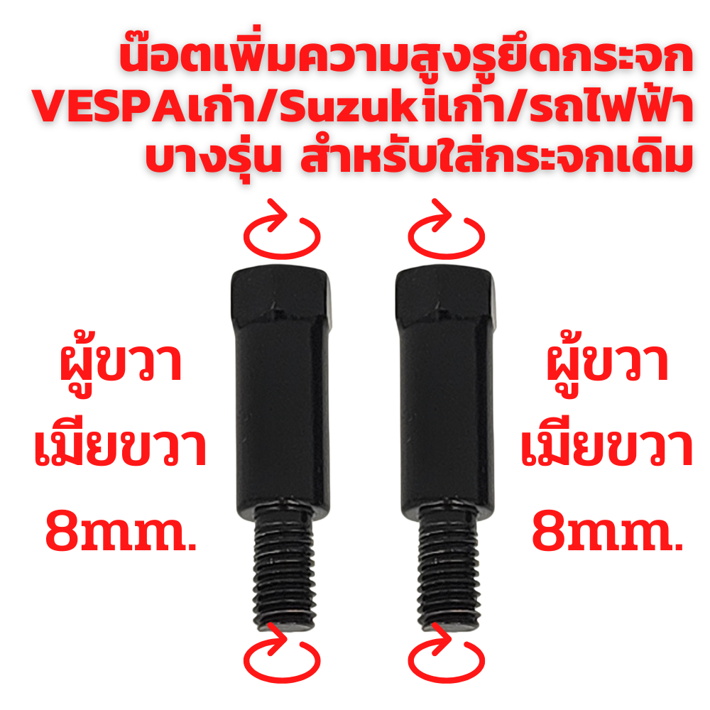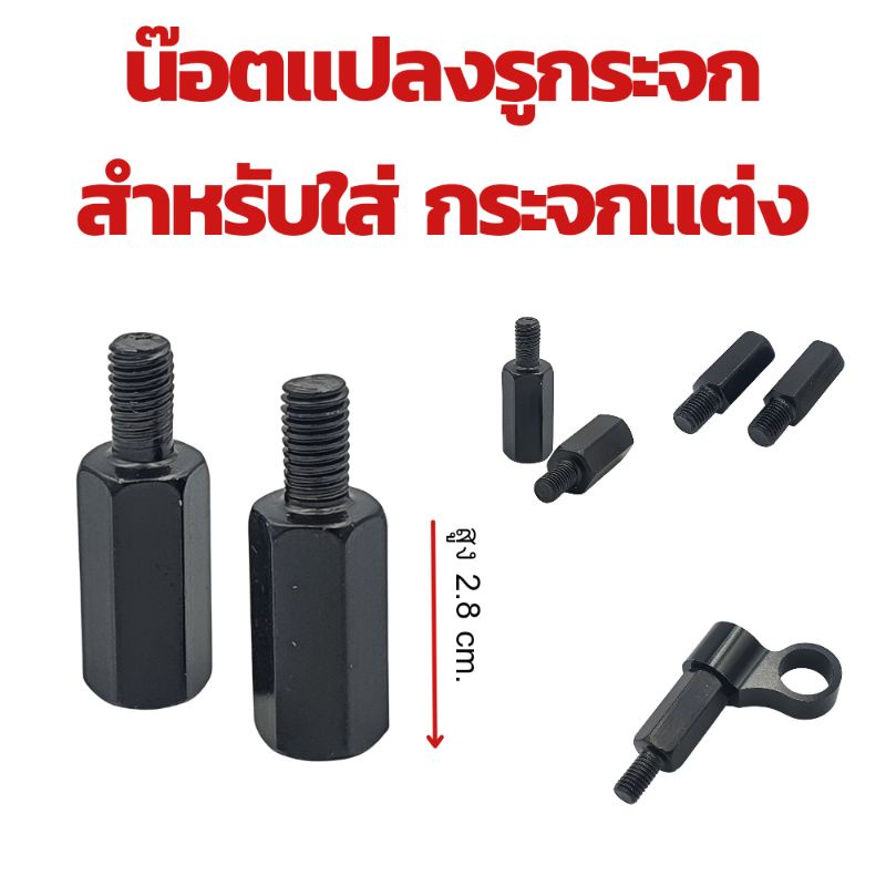 น๊อตแปลงรูกระจก สำหรับใส่กระจกแต่ง Honda/ Yamaha/ Vespa/ Suzuki !!!! ราคาพิเศษ (ราคาต่อคู่)