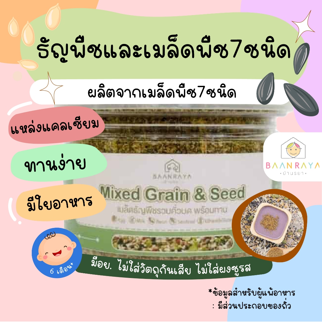 ธัญพืชและเมล็ดพืช 7 ชนิด อาหารเด็ก 6 เดือนขึ้นไป Mixed Grain & Seed อาหารเด็ก อาหารสำหรับเด บ้านรยา (6m+) อาหารเด็ก