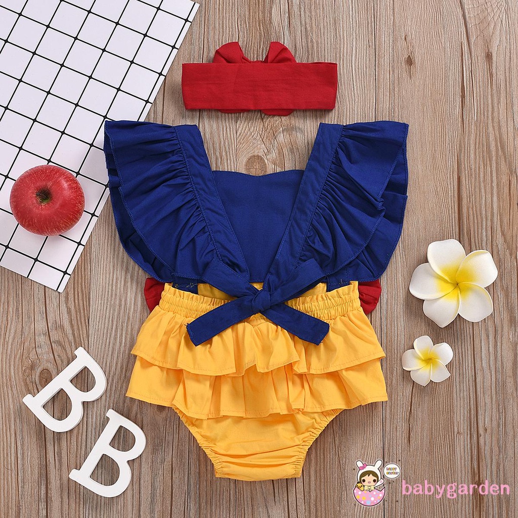 【ส่งจากไทย】 ชุดรอมเปอร์เด็กทารกหญิง แขนกุด แต่งระบายและโบว์ พร้อมที่คาดผม สำหรับเด็ก 0-24 เดือน