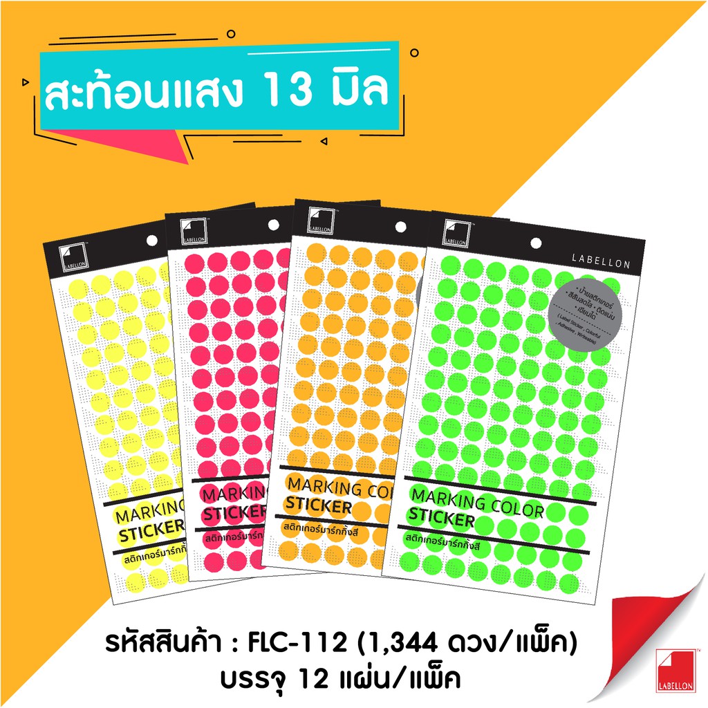 Labellon | Paper Sticker (FLC-112) สติกเกอร์มาร์กกิ้งสีสะท้อนแสง ดวงกลม 13 มิล บรรจุ 12 แผ่น/แพ็ค
