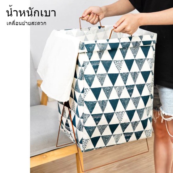 พร้อมส่ง! ตะกร้าผ้า พับได้ มีขาตั้งเหล็ก มีล้อ ใส่เสื้อผ้า ของอเนกประสงค์