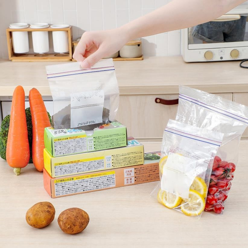 พร้อมส่ง! ถุงซิปล็อค ถุงถนอมอาหาร กันน้ำ เข้าตู้เย็น-ไมโครเวฟได้ พร้อมช่องเขียนชื่อและวันหมดอายุ 3 ขนาด