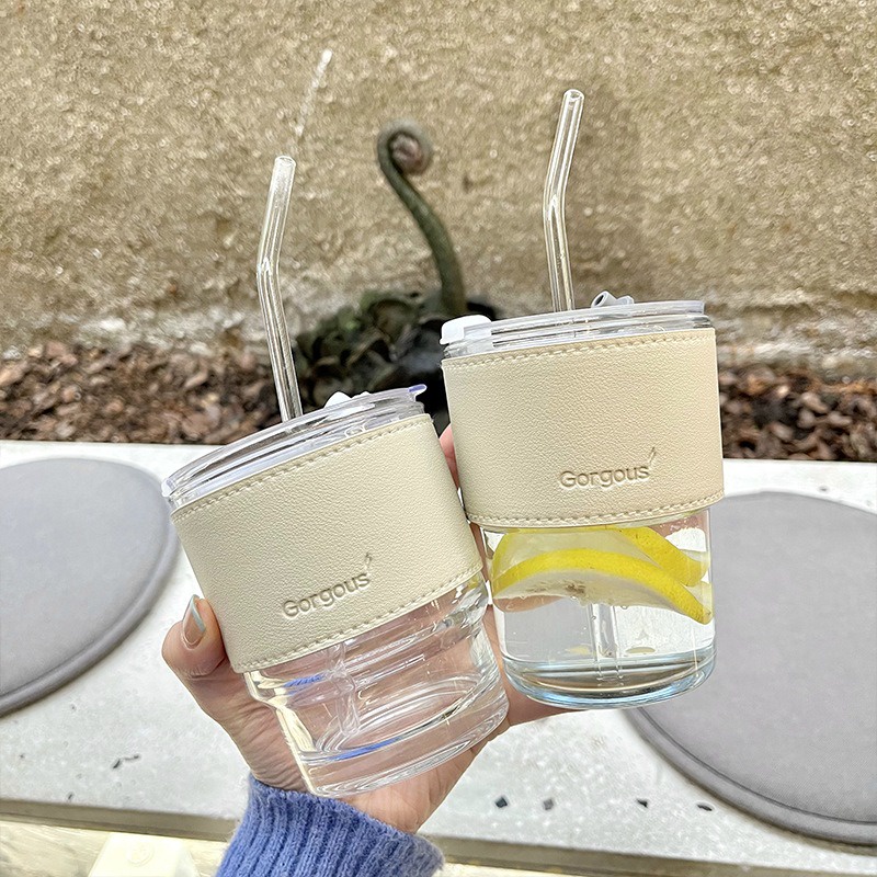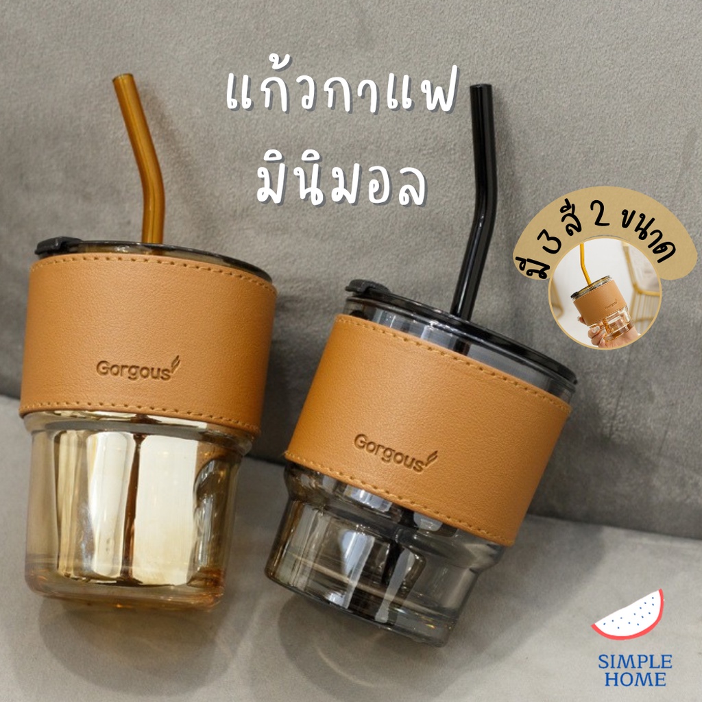 พร้อมส่ง! แก้วน้ำมินิมอล แก้วกาแฟ สายคาเฟ่ minimal พร้อมหลอด ฝาปิด และที่จับกันร้อนเย็น มี 2ขนาด 3สี