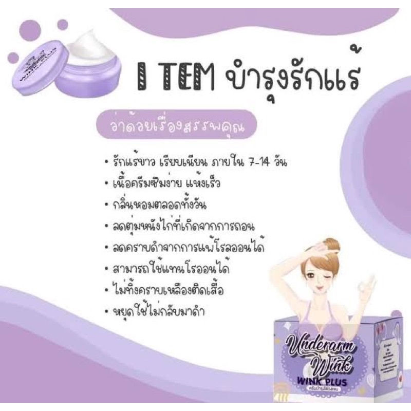 Wink Plus วิ้งค์พลัส ครีมทารักแร้ ✨ปริมาณ : 10 กรัม (ใช้ได้ 7-14 วัน