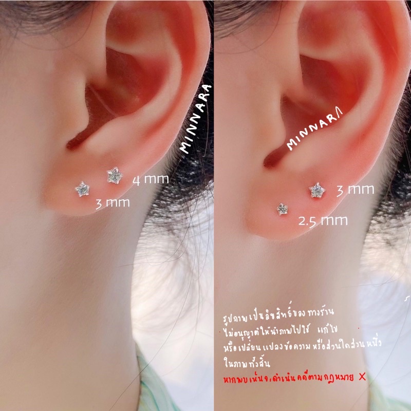 Sliver 92.5 ต่างหูเงินแท้ เพชรเตยดาว เพชรฟันปลา เพชรเหลี่ยม 💎💎