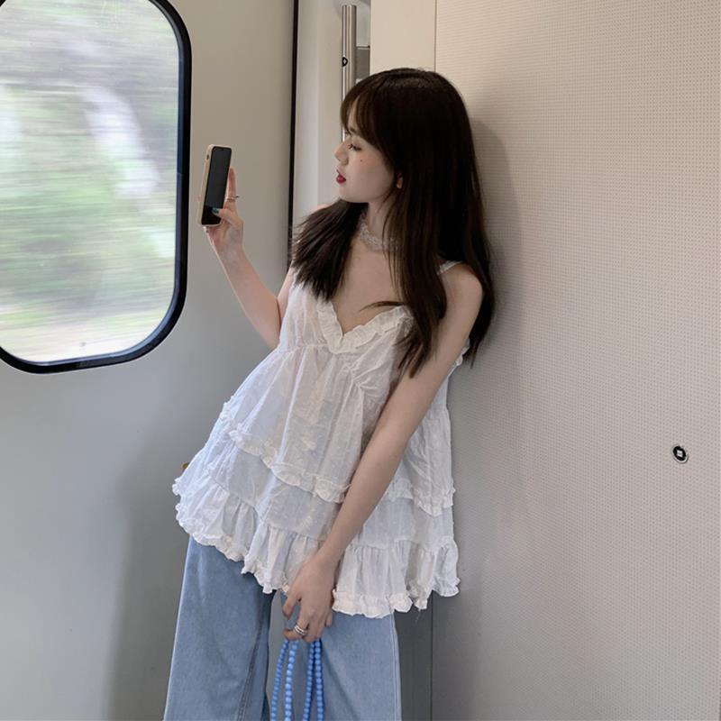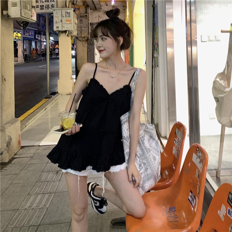 เสื้อสายเดี่ยว แขนกุด คอวี สีพื้น สำหรับผู้หญิง
