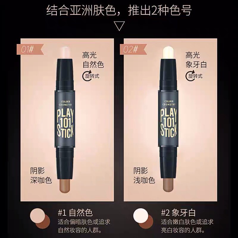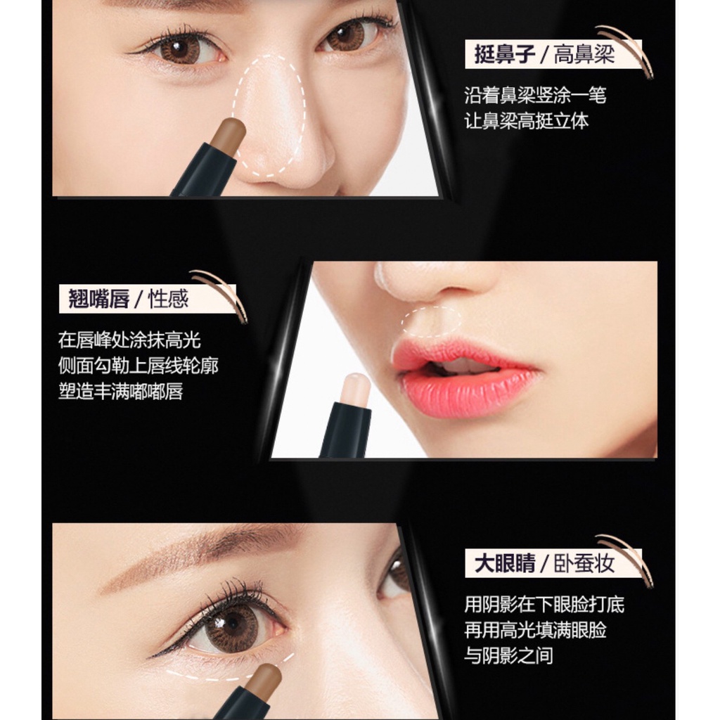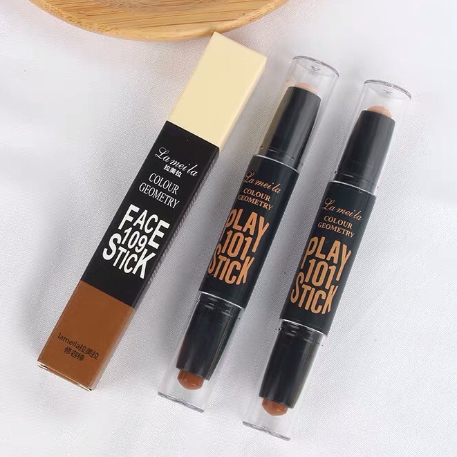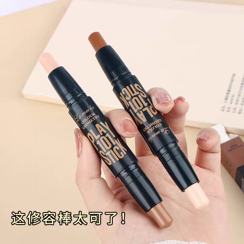 Lameila 1002 เฉดดิ้ง ไฮไลท์ คอนทัวร์ เนื้อครีม แบบแท่ง 2 หัว ปกปิดรอยสิว รอยคล้ำ ให้ใบหน้ามีมิติ ติดทน กันน้ำ กันเหงื่อ