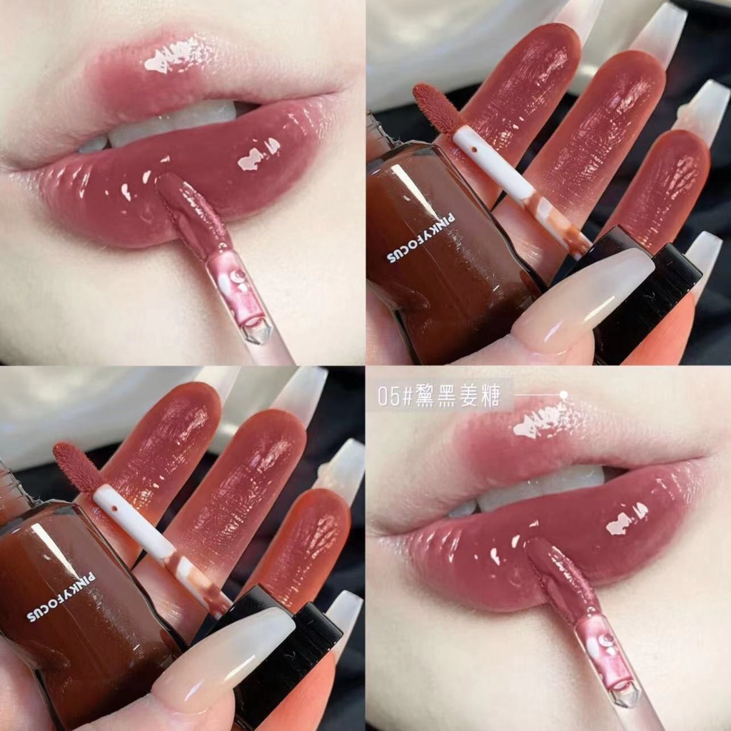 PINKY FOCUS 4458 ลิปเจลลี่ทินท์ ลิปกระจก เนื้อกลอส เจลลี่นุ่มละมุน บางเบา เกลี่ยง่าย ไม่หนักปาก โทนสีสวย ติดทน กันน้ำ