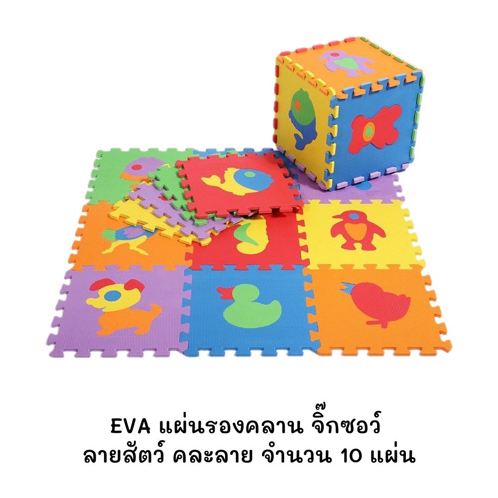[มีส่งด่วน] HelloMom แผ่นรองคลานจิ๊กซอว์ ขนาด 30 x30 cm EVA Pazzle mat ลาย ABC กขค สัตว์ 0-9 ตัวเลข