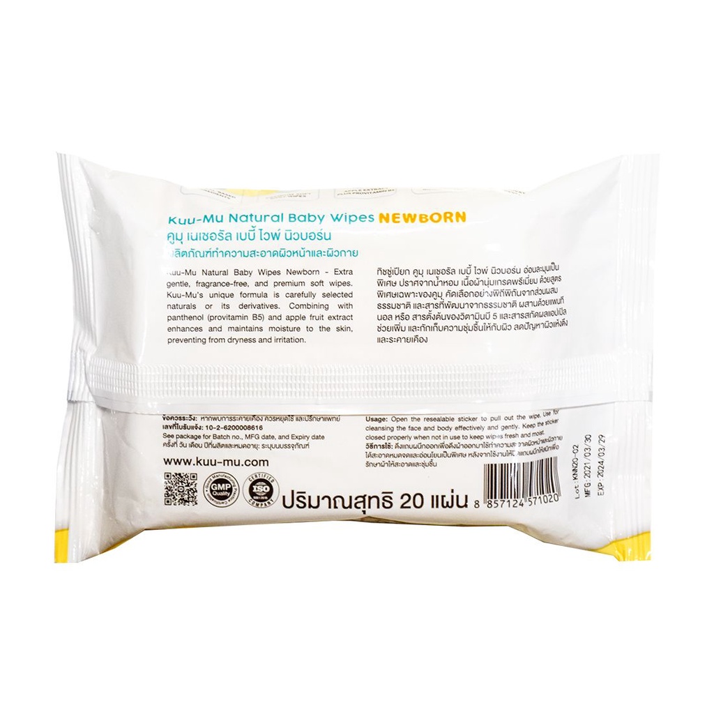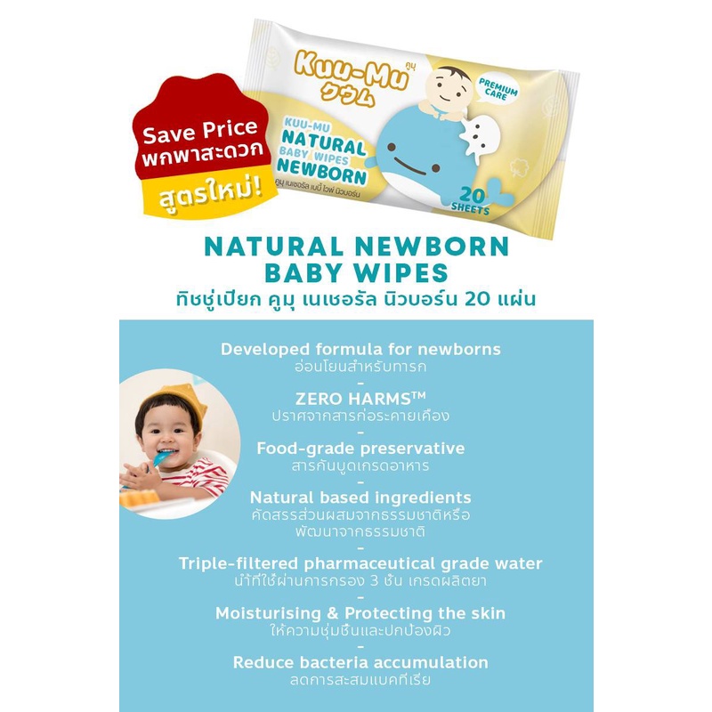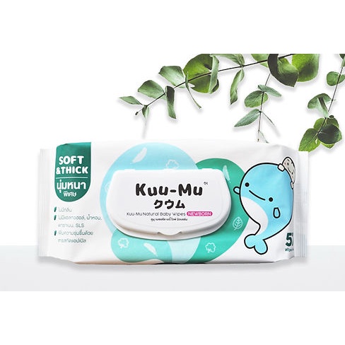 KUU-MU คูมุ ทิชชูเปียกชุปน้ำเกลือ NATURAL BABY WIPES ทิชชู่เปียก เนเชอรัล แผ่นหนา ซึมซับเยี่ยม