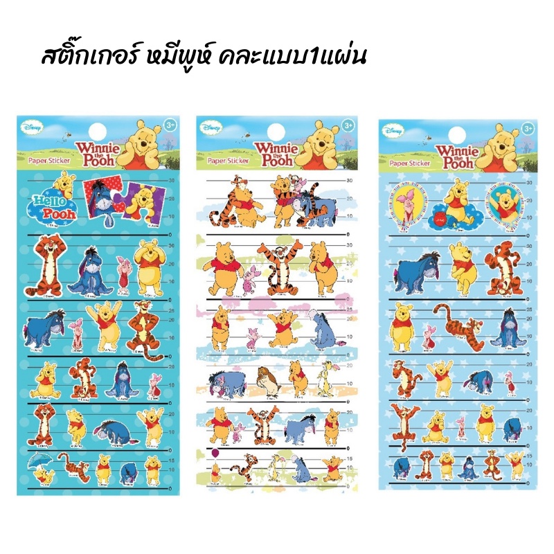 Disney ลิขสิทธิ์แท้ สติ๊กเกอร์ Sticker Lilo & Stitch Princess Winnie The Pooh Micky Minnie 1 แผ่น